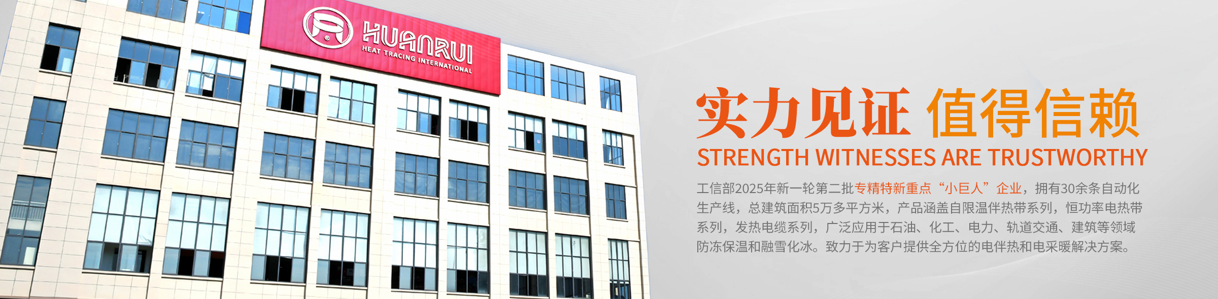 安徽環(huán)瑞電熱器材有限公司成立于2007年,注冊資本5080萬元。是集自限溫伴熱帶,恒功率電伴熱、發(fā)熱電纜研發(fā)、生產(chǎn)、銷售及服務(wù)于一體的工信部2025年新一輪第二批專精特新重點(diǎn)“小巨人”企業(yè),2024年度長三角商業(yè)創(chuàng)新樣本企業(yè)。公司現(xiàn)位于合肥市肥東縣經(jīng)濟(jì)技術(shù)開發(fā)區(qū)占地56畝,總建筑面積5萬多平方米。