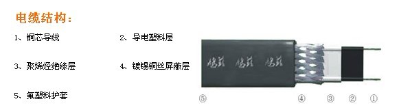 自控溫電伴熱帶滿足EXeIIT4,最高表面溫度為135℃,以下為產品結構示意圖: