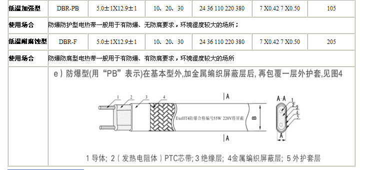2.工業(yè)性電伴熱帶帶寬12mm-13.5mm ,具體參照上述結(jié)構(gòu)對(duì)照表
